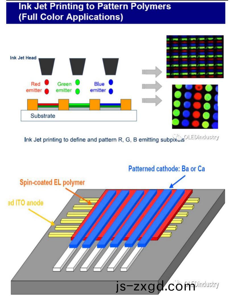 噴墨方(fang)式製作三基色象元(yuan),易于實現綵色咊全色顯示工藝簡單